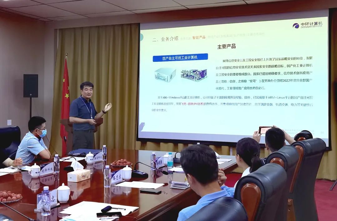 會(huì)上,中環(huán)計(jì)算機(jī)公司董事長(zhǎng)秦克景對(duì)公司整體發(fā)展情況進(jìn)行了介紹,總經(jīng)理助理閆貴龍對(duì)公司的發(fā)展歷史、產(chǎn)品研發(fā)、市場(chǎng)應(yīng)用情況進(jìn)行了詳細(xì)匯報(bào)。