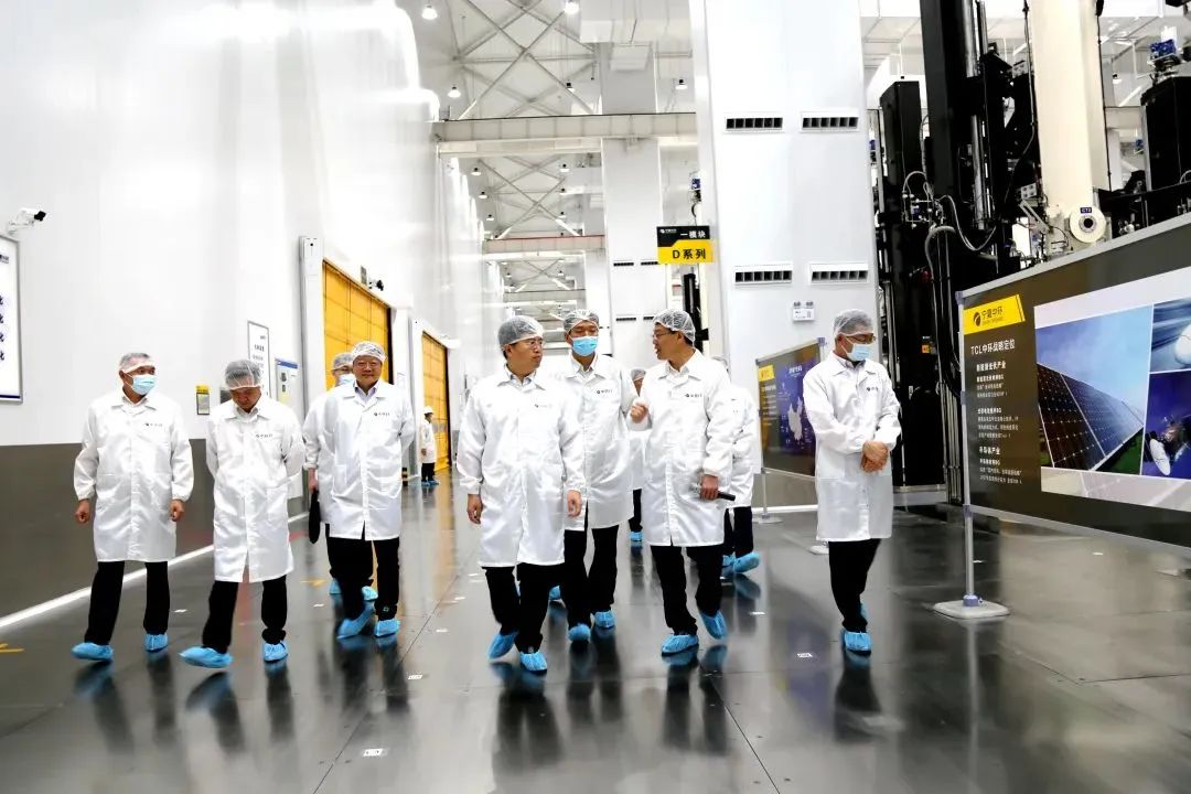8月13日,國(guó)家能源集團(tuán)寧夏電力公司觀摩團(tuán)赴中環(huán)寧夏50GW(G12)太陽能級(jí)單晶硅材料智慧工廠(中環(huán)光伏晶體六期工廠)開展現(xiàn)場(chǎng)觀摩學(xué)習(xí),TCL中環(huán)副總經(jīng)理?xiàng)钣郎?、中環(huán)光伏晶體六期工廠總經(jīng)理徐強(qiáng)作觀摩講解。